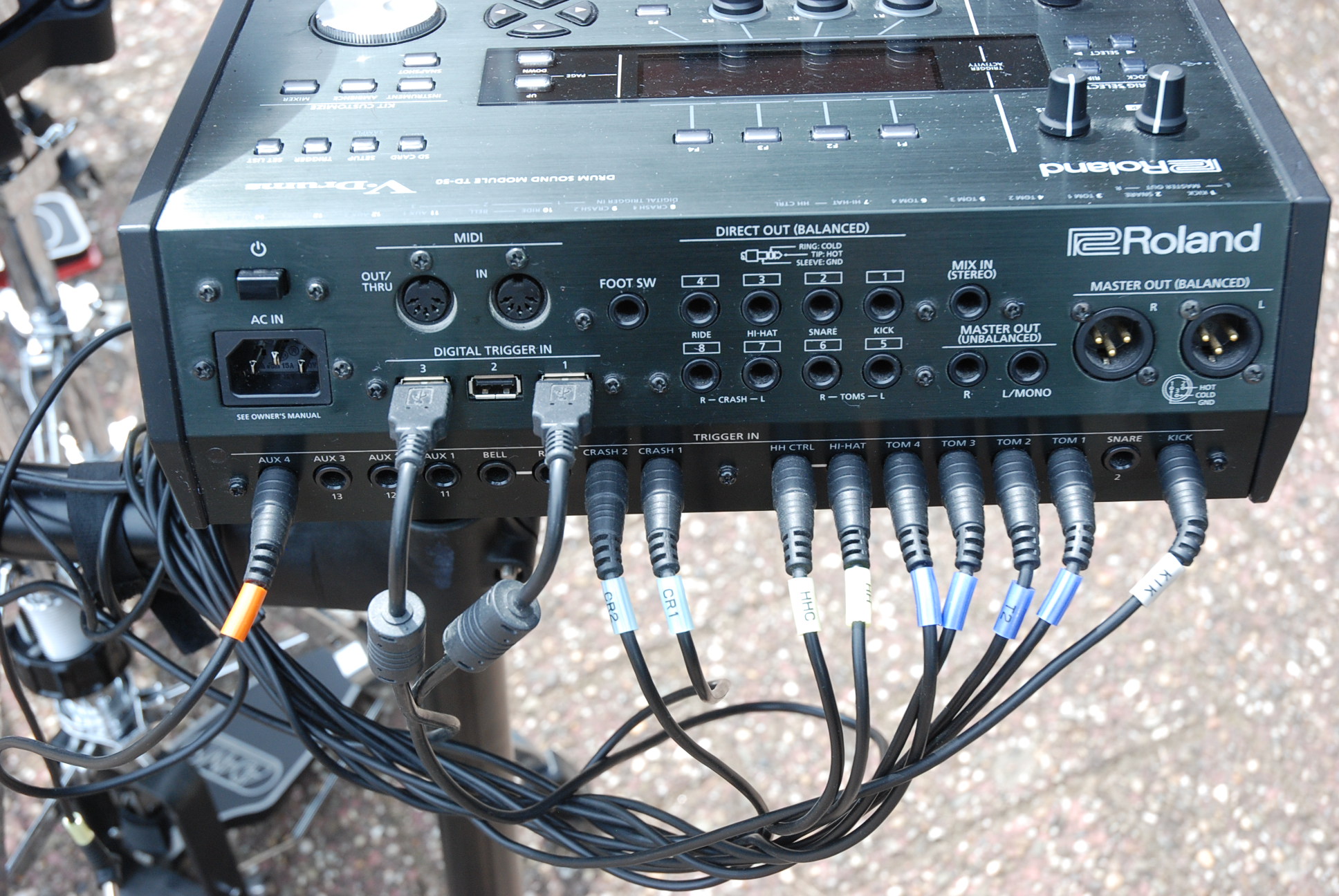Triple trigger cymbalpad, usb bekabeling